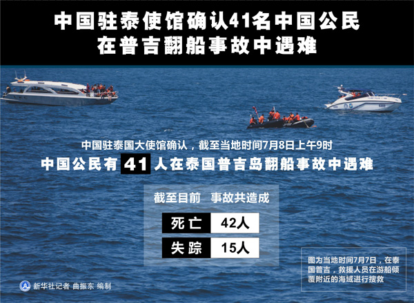 圖表:中國(guó)駐泰使館確認(rèn)41名中國(guó)公民在普吉翻船事故中遇難 新華社記者 曲振東 編制