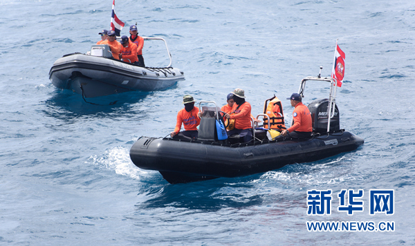 7月8日,在泰國(guó)普吉,泰國(guó)搜救船只在失事海域搜尋失聯(lián)人員。新華社記者秦晴攝