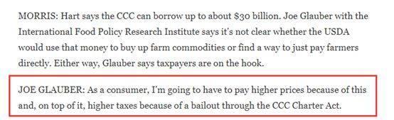 比如,一位美國(guó)愛(ài)荷華州立大學(xué)的學(xué)者就表示,單純?cè)黾愚r(nóng)業(yè)補(bǔ)貼根本無(wú)法在貿(mào)易戰(zhàn)這樣的沖突中保護(hù)農(nóng)民的權(quán)益。而另一位美國(guó)食品領(lǐng)域的學(xué)者則表示,即便特朗普政府會(huì)出面直接收購(gòu)農(nóng)民的產(chǎn)品,這些收購(gòu)的錢款還不是得從消費(fèi)者——即納稅人——的口袋里出?