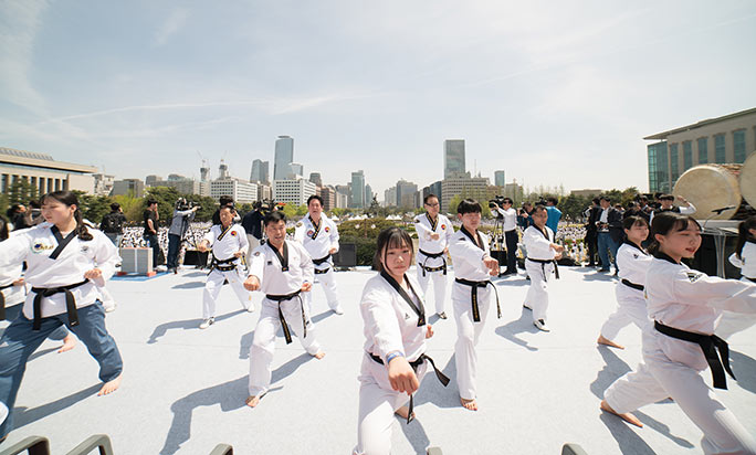參加本次活動(dòng)的既有年輕人,也有老年人。整個(gè)表演經(jīng)過精心編排,持續(xù)了10分鐘時(shí)間,所有參與者在表演中都穿著傳統(tǒng)的跆拳道服。