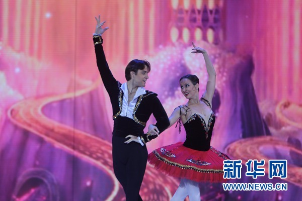 兩位演員在“斯拉夫巴扎”國(guó)際藝術(shù)節(jié)上表演芭蕾。新華社記者 魏忠杰攝