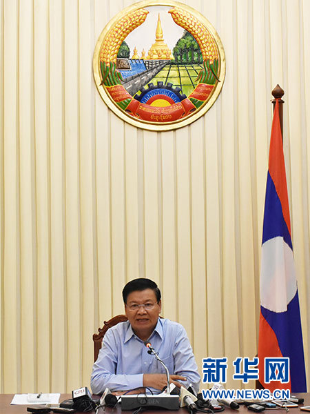 7月25日,老撾總理通倫在首都萬(wàn)象的總理府向媒體介紹潰壩情況。新華社發(fā)(李莎 攝)