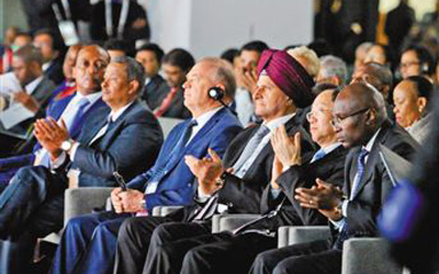 在金磚國家工商論壇會場,會議主持人在致開幕詞時(shí),提議與會嘉賓起立鼓掌一分鐘,為金磚國家這些年取得的合作成就喝彩。坐在本報(bào)記者身旁的一位先生掌聲尤其熱烈,一邊鼓掌,一邊還發(fā)出歡呼聲。他是南非標(biāo)準(zhǔn)銀行總裁蘇卡尼·雅巴舍。