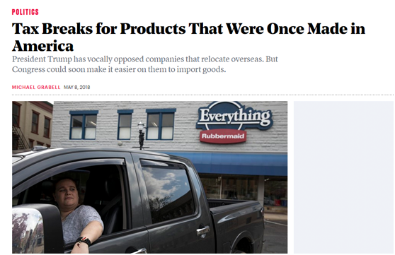 這方面,美國的《大西洋月刊》倒是在今年5月美國對華貿易戰(zhàn)開打前有所關注。當時這家媒體認為,這個法案展現了美國當下貿易政策的一種矛盾:一方面美國國會兩黨都希望給大企業(yè)進一步減輕關稅壓力——甭管他們的產品到底是哪兒生產的;可另一方面美國總統(tǒng)特朗普卻多次表示要懲罰把工廠搬到美國境外的企業(yè)。