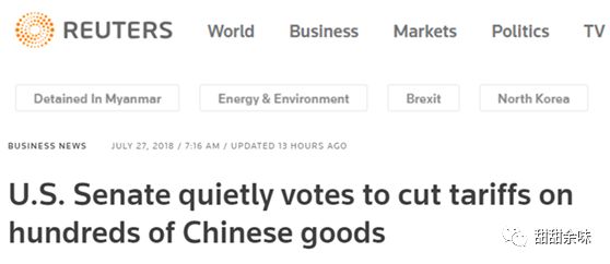 英國路透社日前報道,美國參議院7月26日通過了一個名為Miscellaneous Tariff Bill的法案,中文稱為“綜合關(guān)稅法案”或“關(guān)稅雜項法案”。報道的標題頗有意味地用了個修飾詞“quietly”(靜悄悄地)——《美參議院悄悄通過立法降低數(shù)百種中國商品的關(guān)稅》。