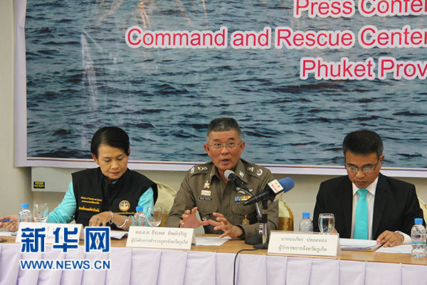 8月7日,普吉府警察局局長(zhǎng)提拉蓬·提乍龍(中)在發(fā)布會(huì)上介紹案件調(diào)查情況。新華社記者 徐海濤 攝