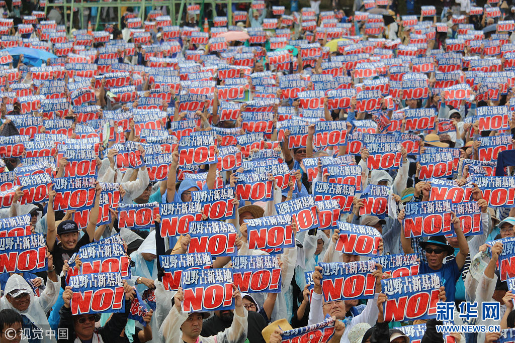 當(dāng)?shù)貢r(shí)間2018年8月11日,日本沖繩縣約7萬(wàn)民眾8月11日在那霸市舉行大規(guī)模集會(huì),反對(duì)駐日美軍將普天間基地遷往名護(hù)市邊野古地區(qū),要求駐日美軍放棄在邊野古地區(qū)新建基地并立即關(guān)閉普天間機(jī)場(chǎng)。當(dāng)天,日本東京都、大阪府、福岡、北海道縣等地民眾也同時(shí)舉行集會(huì)和游行,抗議日本政府推進(jìn)邊野古地區(qū)填海施工。(圖片來(lái)源:視覺(jué)中國(guó))