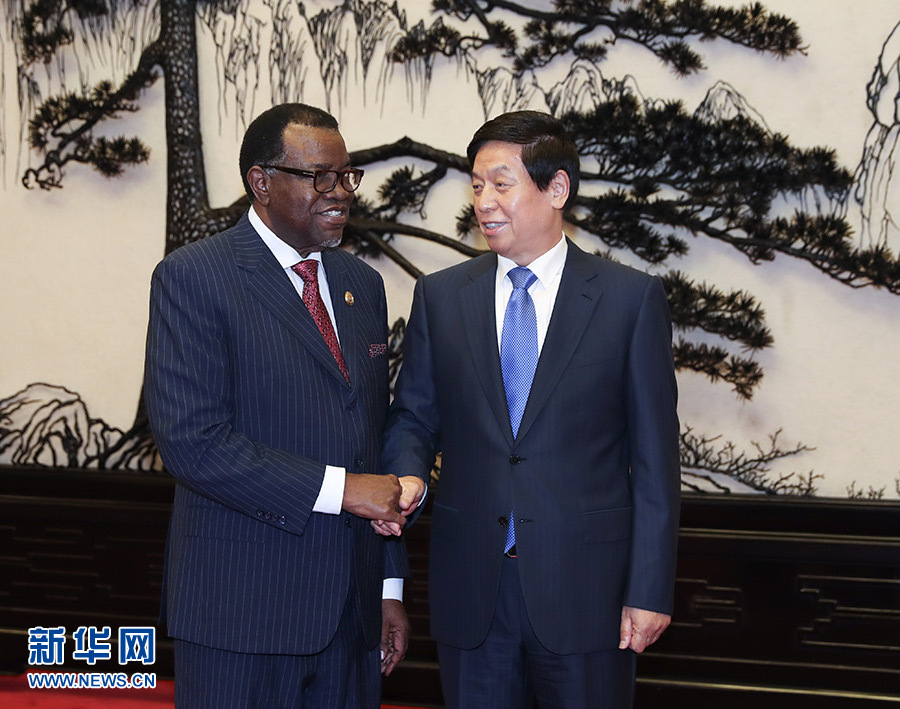 9月2日,全國人大常委會委員長栗戰(zhàn)書在北京人民大會堂會見納米比亞總統(tǒng)根哥布。 新華社記者 龐興雷 攝