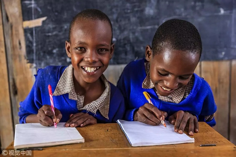肯尼亞孩子在教室上課。