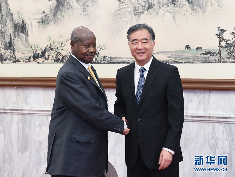 9月6日,全國(guó)政協(xié)主席汪洋在北京釣魚(yú)臺(tái)國(guó)賓館會(huì)見(jiàn)烏干達(dá)總統(tǒng)穆塞韋尼。 新華社記者 申宏 攝