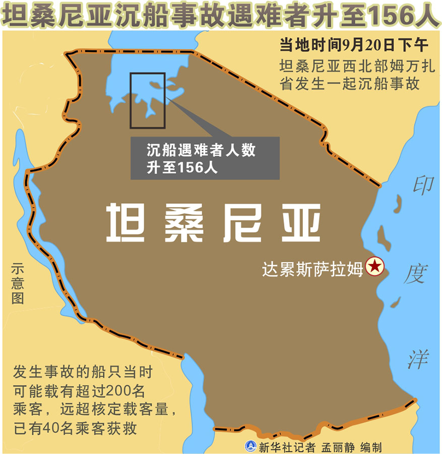 新華社達(dá)累斯薩拉姆9月22日電(記者李斯博 高竹)坦桑尼亞官員22日說,該國(guó)西北部姆萬(wàn)扎?。玻叭瞻l(fā)生的沉船事故已造成至少156人死亡。