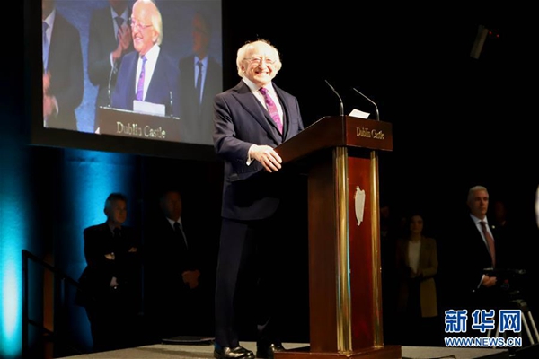 10月27日,在愛爾蘭首都都柏林,希金斯(中)在總統(tǒng)選舉獲勝后發(fā)表講話。愛爾蘭總統(tǒng)選舉機構負責人27日晚宣布,愛爾蘭現(xiàn)任總統(tǒng)希金斯在26日舉行的選舉中獲勝,再次當選總統(tǒng)。新華社發(fā)