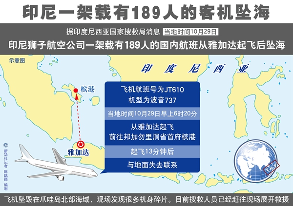 獅航這架載有189人的國內(nèi)航班當(dāng)天早上6時20分從雅加達起飛,前往邦加勿里洞省首府檳港,但在起飛13分鐘后與地面失去聯(lián)系。飛機隨后被確認(rèn)墜海。