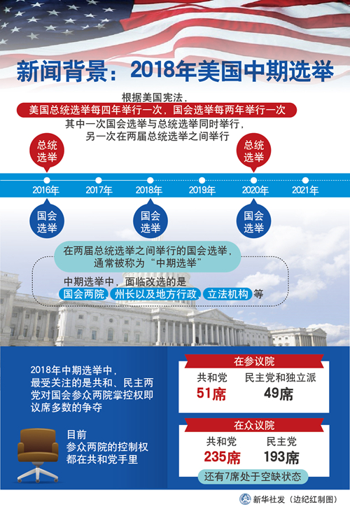 新聞背景:2018年美國中期選舉 新華社發(fā) 邊紀紅 制圖