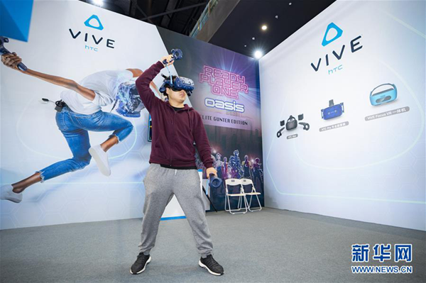 11月7日,參觀者在第五屆世界互聯(lián)網(wǎng)大會上體驗虛擬現(xiàn)實技術(shù)。當(dāng)日,第五屆世界互聯(lián)網(wǎng)大會在浙江烏鎮(zhèn)開幕。 新華社記者 才揚(yáng) 攝