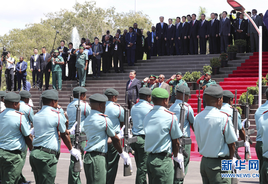 11月16日,國家主席習(xí)近平在莫爾茲比港會見巴布亞新幾內(nèi)亞總督達(dá)達(dá)埃。會見開始前,達(dá)達(dá)埃在議會大廈前廣場為習(xí)近平舉行隆重歡迎儀式。新華社記者 費茂華 攝
