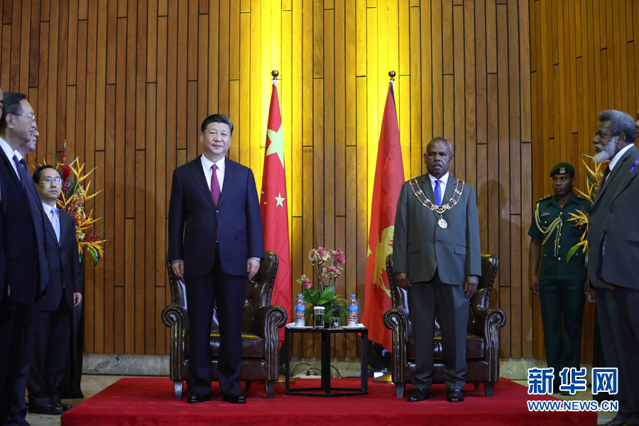 11月16日,國家主席習(xí)近平在莫爾茲比港會見巴布亞新幾內(nèi)亞總督達(dá)達(dá)埃。 新華社記者 鞠鵬 攝
