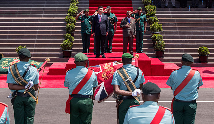 11月16日,國(guó)家主席習(xí)近平在莫爾茲比港會(huì)見(jiàn)巴布亞新幾內(nèi)亞總督達(dá)達(dá)埃。會(huì)見(jiàn)開(kāi)始前,達(dá)達(dá)埃在議會(huì)大廈前廣場(chǎng)為習(xí)近平舉行隆重歡迎儀式。新華社記者 丁林 攝