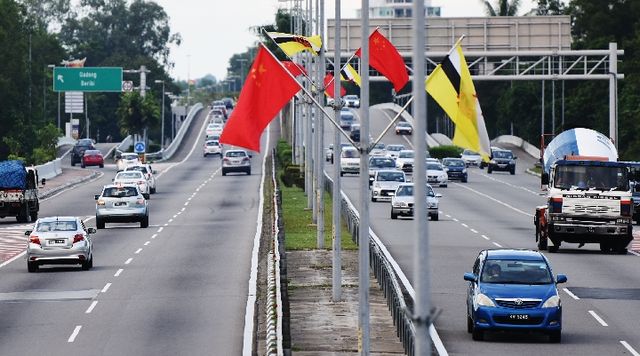 13日,當(dāng)?shù)刈畲笥⑽膱?bào)紙《婆羅洲公報(bào)》在頭版顯著位置刊發(fā)了習(xí)主席即將來訪的消息。為迎接中國(guó)國(guó)家元首時(shí)隔13年再次到訪,從斯里巴加灣機(jī)場(chǎng)到文萊蘇丹哈桑納爾居住的努洛伊曼王宮的馬路上,早早掛起了鮮艷的五星紅旗。