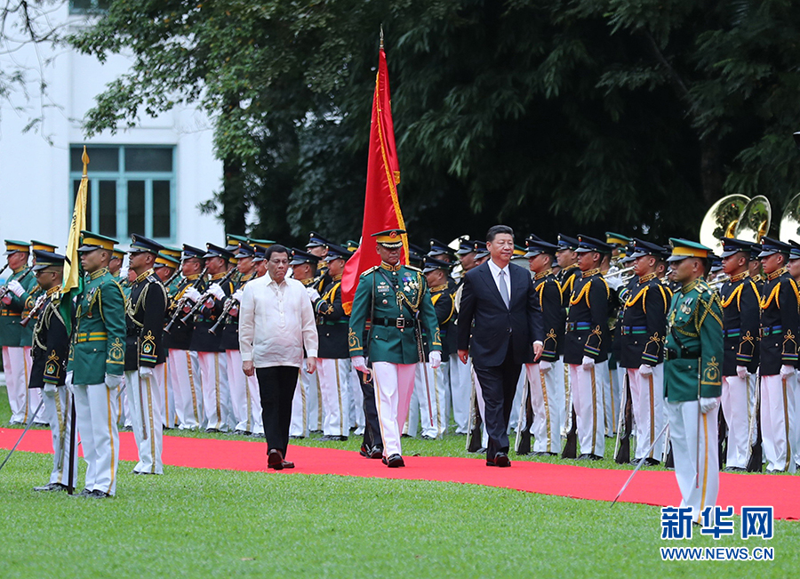 11月20日,國家主席習(xí)近平在馬尼拉同菲律賓總統(tǒng)杜特爾特舉行會談。會談開始前,習(xí)近平出席杜特爾特在總統(tǒng)府前草坪舉行的隆重歡迎儀式。 新華社記者 丁林 攝