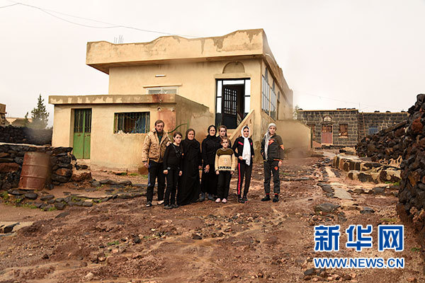 在敘利亞南部蘇韋達省舍比克村,阿布·阿馬爾一家站在自家房前合影(11月14日攝)。新華社發(fā)(胡馬姆 攝)