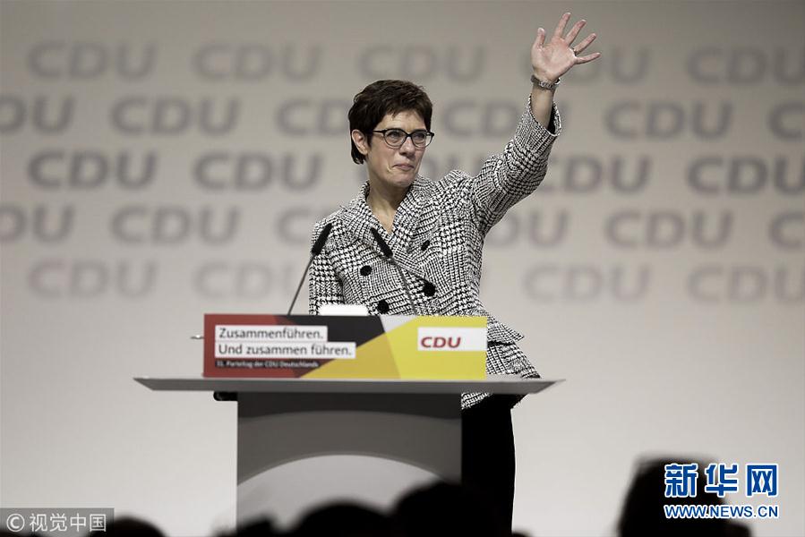 當(dāng)?shù)貢r間2018年12月7日,德國漢堡,德國基督教民主聯(lián)盟(基民盟)全國代表大會召開。根據(jù)會議選舉結(jié)果,基民盟秘書長安妮格雷特·克蘭普-卡倫鮑爾接替德國總理安格拉·默克爾,成為新一屆基民盟主席。 (圖片來源:視覺中國)