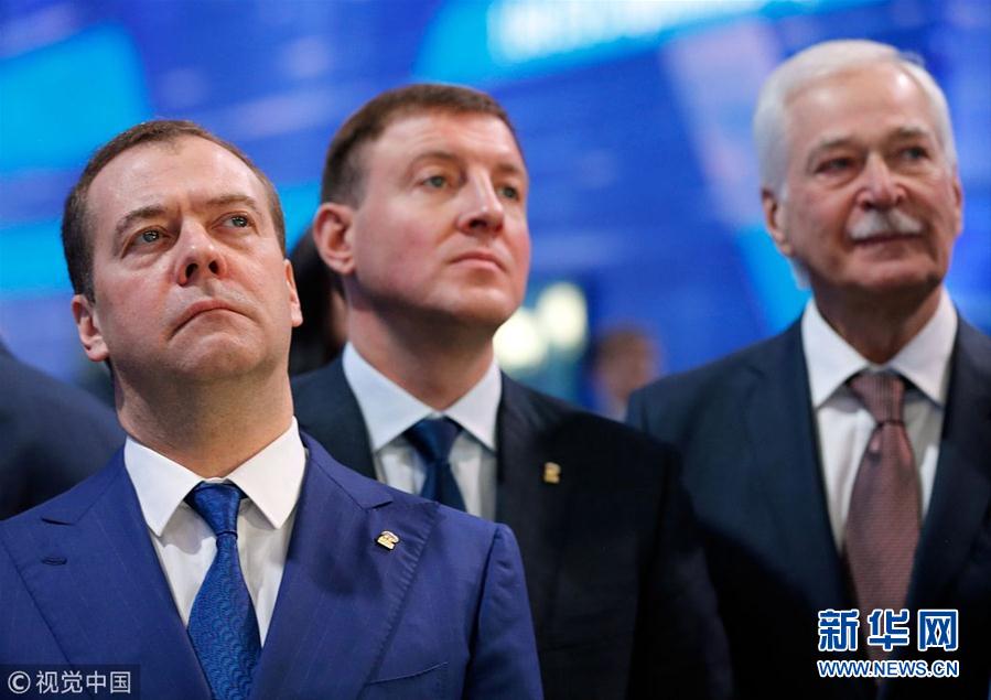 當(dāng)?shù)貢r(shí)間2018年12月8日,俄羅斯莫斯科,俄羅斯執(zhí)政黨“統(tǒng)一俄羅斯黨”年度會(huì)議舉行,俄羅斯總統(tǒng)普京和總理梅德韋杰夫出席會(huì)議。(圖片來(lái)源:視覺(jué)中國(guó))