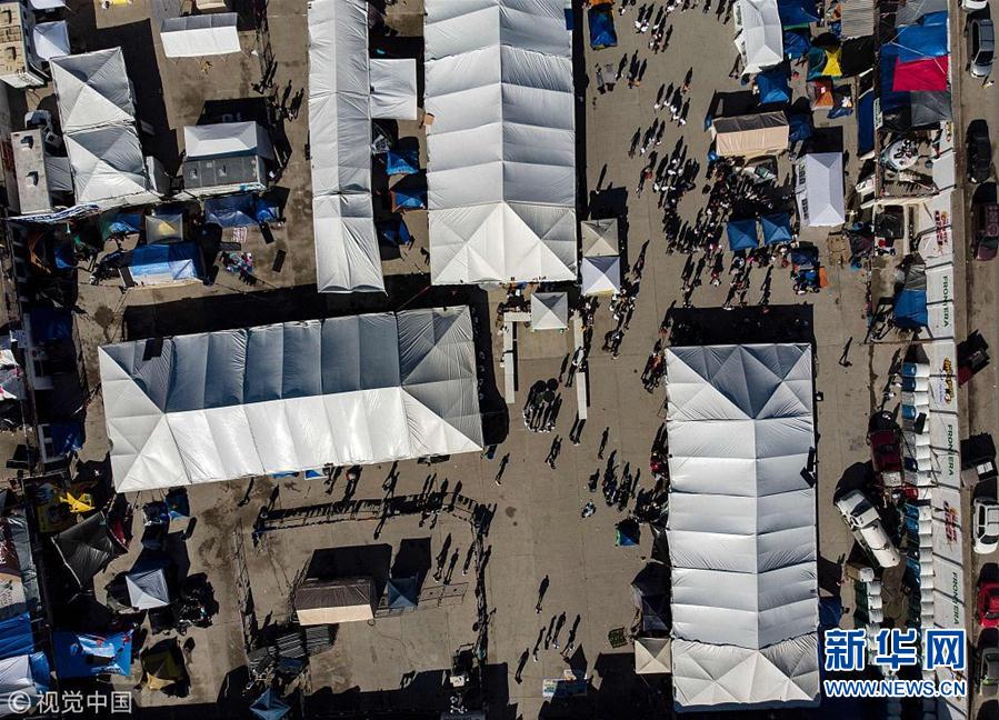當(dāng)?shù)貢r(shí)間2018年12月8日,墨西哥提華納,試圖進(jìn)入美國(guó)的中美洲“大篷車”移民滯留臨時(shí)避難所。(圖片來源:視覺中國(guó))