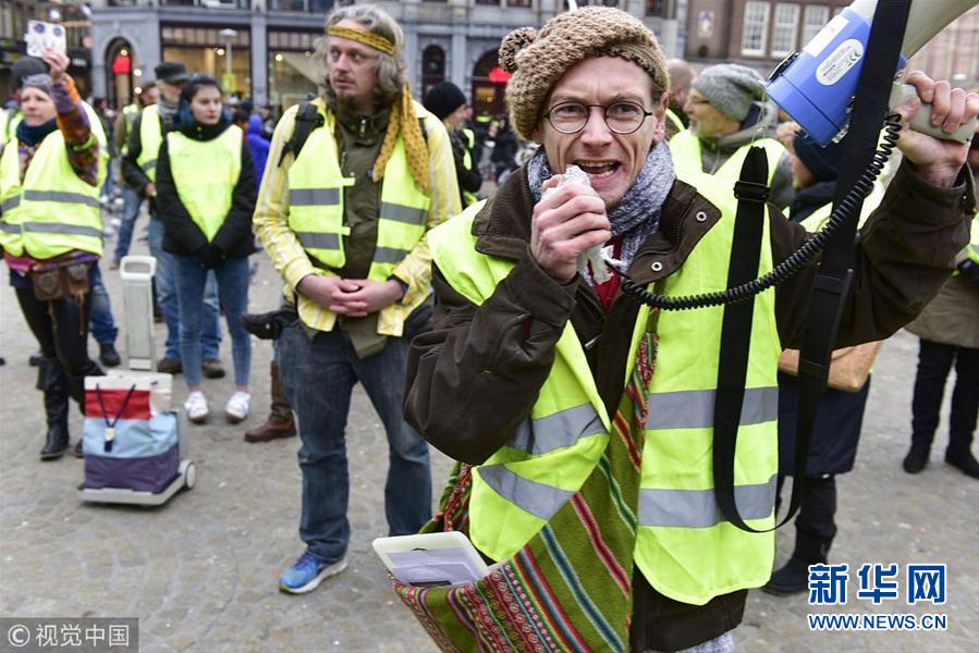 當(dāng)?shù)貢r(shí)間12月15日,荷蘭阿姆斯特丹,當(dāng)?shù)乇l(fā)“黃背心”抗議活動(dòng)。(圖片來(lái)源:視覺(jué)中國(guó))