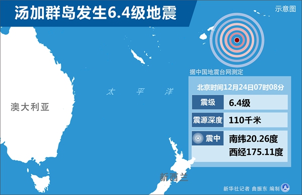 湯加群島發(fā)生6.4級(jí)地震 新華社記者 曲振東 編制