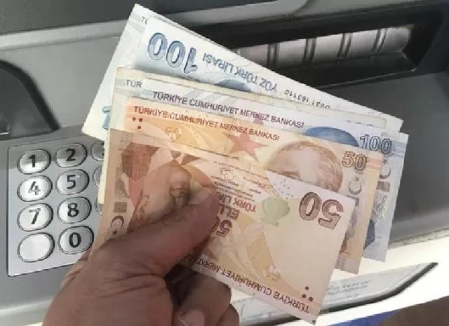 2018年8月14日,在土耳其伊斯坦布爾,一名當?shù)厝饲妩c里拉紙幣。新華社發(fā)(堅克·巴克蘭 攝)