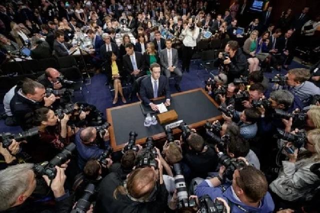 美國社交媒體平臺臉書公司首席執(zhí)行官馬克·扎克伯格2018年4月10日出席聽證會,就用戶數(shù)據(jù)泄露事件接受國會質(zhì)詢。新華社發(fā)(沈霆 攝)
