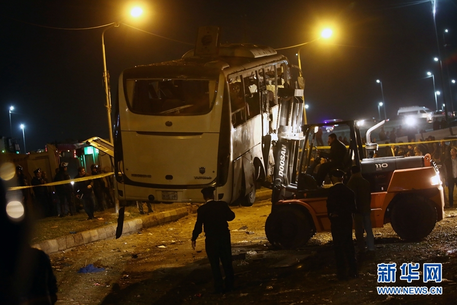 這是埃及吉薩金字塔附近遭路邊炸彈襲擊的現(xiàn)場(chǎng)(12月28日攝)。新華社發(fā)(艾哈邁德·戈馬 攝)