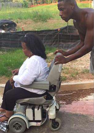 6月14日,美國佐治亞州,一名男子酷暑下推了30分鐘輪椅,幫助因輪椅電池?fù)p壞被困路中間的殘疾女士回家。