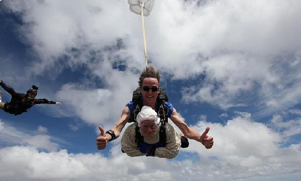 12月9日,澳大利亞蘭霍恩溪,102歲的老奶奶奧謝玩高空跳傘,給運(yùn)動神經(jīng)元疾病研究籌措資金。這種病2008年奪去了她女兒的生命。