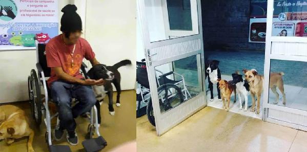 12月16日,巴西流浪漢塞薩爾凌晨求醫(yī),他的“家屬”——四只流浪狗趕來“陪護(hù)”。