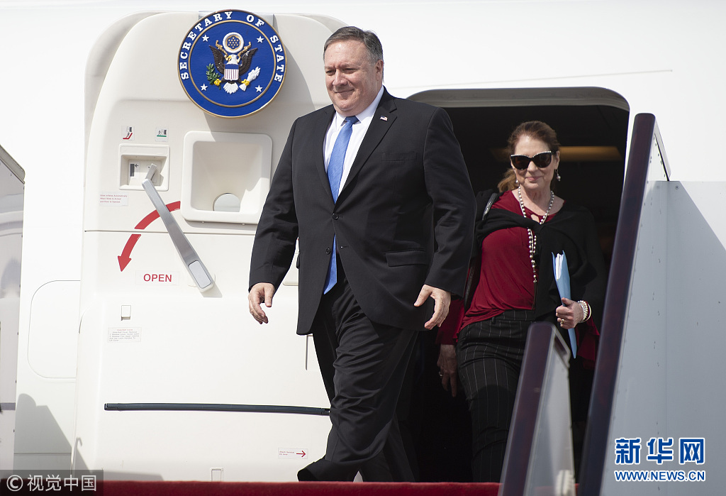 2019年1月13日,卡塔爾多哈,美國國務(wù)卿邁克·蓬佩奧訪問卡塔爾。蓬佩奧與卡塔爾副首相兼外交大臣穆罕默德在多哈的喜來登大酒店簽署了諒解備忘錄和意向聲明并舉行聯(lián)合記者會(huì)。蓬佩奧表示,兩國外交部門領(lǐng)導(dǎo)人當(dāng)天簽署了一份諒解備忘錄,將擴(kuò)建和改造烏代德美國空軍基地。(圖片來源:視覺中國)