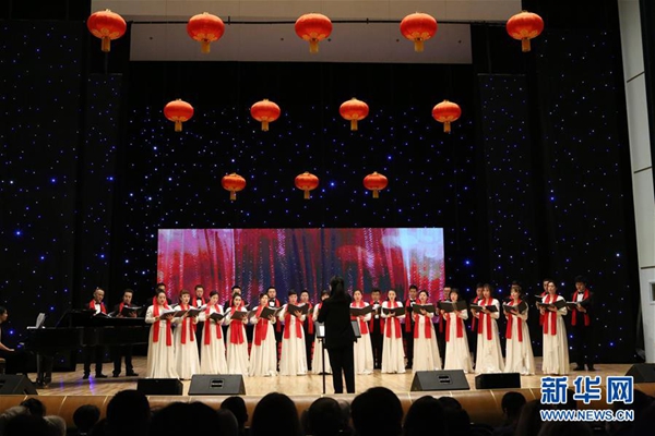 1月23日,在白俄羅斯首都明斯克,中國(guó)中央歌劇院的藝術(shù)家們?cè)凇皻g樂春節(jié)”歌舞晚會(huì)上演唱。新華社記者 魏忠杰 攝
