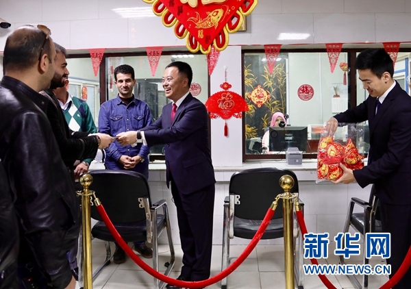 條件簡陋的簽證廳里,掛起了大大的中國結(jié),貼上了紅紅的福字和剪紙,洋溢著濃濃的年味。上午,中國駐伊拉克大使陳偉慶走進簽證廳,親手為伊拉克民眾遞上簽證,還給大家送上中國結(jié),與前來辦證的伊拉克民眾共迎中國年。