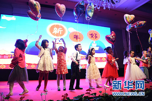 1月31日,孩子們在土耳其伊斯坦布爾領(lǐng)區(qū)春節(jié)聯(lián)歡晚會上表演節(jié)目。新華社記者 徐速繪 攝