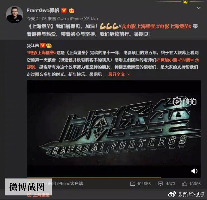 郭帆日前就在微博上轉(zhuǎn)發(fā)了科幻電影《上海堡壘》首個(gè)宣傳片,并表達(dá)對(duì)影片的期待。此片也是由《流浪地球》聯(lián)合出品方之一的騰訊影業(yè)參與出品,預(yù)計(jì)將于今年暑期上映。這種“抱團(tuán)取暖”的作法也讓不少科幻迷在網(wǎng)上津津樂(lè)道。