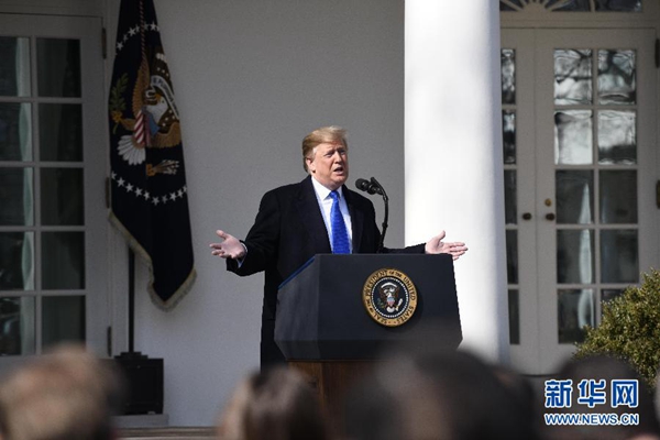 2月15日,美國總統(tǒng)特朗普在華盛頓白宮發(fā)表講話。新華社記者 胡友松 攝