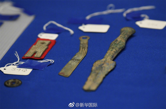 此次返還的中國流失文物藝術(shù)品時間跨度長,從新石器時代直至清代,涉及石器、玉器、青銅器、陶器、錢幣、木雕建筑構(gòu)件等多個門類,多為中國古代墓葬隨葬器物。當天儀式現(xiàn)場展示了其中20余件(套)文物。