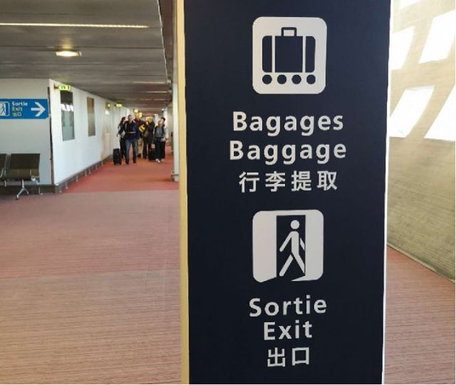戴高樂國際機(jī)場內(nèi)的中文提示語。新華社記者 孫浩 攝