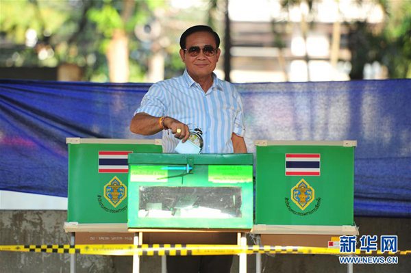 泰國總理巴育8時(shí)左右前往曼谷的一處投票站,排隊(duì)等候投票。他對(duì)媒體說,希望泰國人民參與大選投票,合理行使選舉權(quán),團(tuán)結(jié)一致,共同解決國家所面臨的問題。