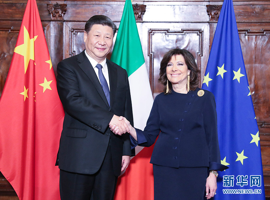 3月22日,國家主席習(xí)近平在羅馬會(huì)見意大利眾議長菲科。(新華社記者王曄攝)