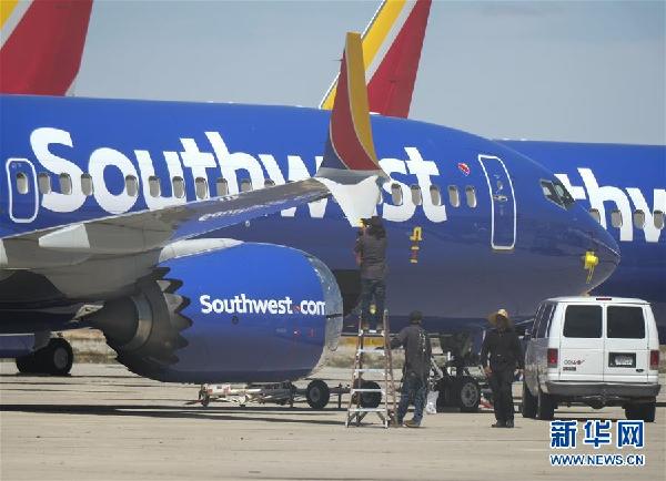 3月27日,在位于美國加利福尼亞州維克托維爾的南加利福尼亞物流機(jī)場(chǎng),工作人員檢查美國西南航空公司的波音737 MAX 8型號(hào)飛機(jī)。美國波音公司27日發(fā)布公告,介紹了737MAX系列飛機(jī)軟件更新情況和對(duì)飛行員培訓(xùn)的新內(nèi)容。 新華社發(fā)(趙漢榮攝)
