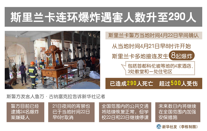 新華社科倫坡4月22日電(記者朱瑞卿 唐璐)斯里蘭卡警方22日早間確認,該國21日發(fā)生的8起爆炸已造成290人死亡,超過500人受傷。