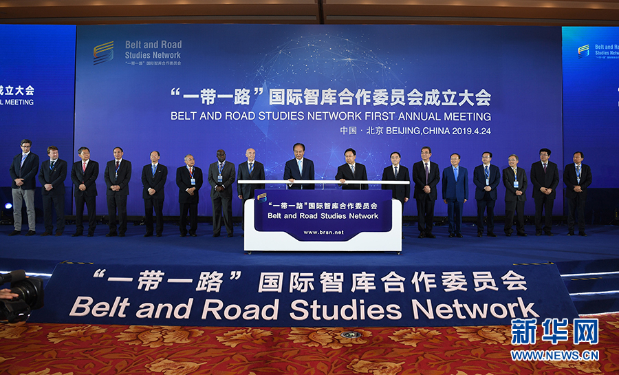 4月24日,由新華社研究院聯(lián)合15家中外智庫共同發(fā)起的“一帶一路”國際智庫合作委員會在北京宣告成立。這是“一帶一路”國際智庫合作委員會理事長、新華社社長、新華社研究院院長蔡名照等共同見證“一帶一路”國際智庫合作委員會官網(wǎng)(www.brsn.net)上線。 新華社記者 金良快 攝