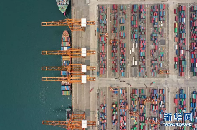圖為廣西欽州保稅港區(qū)碼頭(無人機(jī)拍攝)。新華社記者 曹祎銘 攝